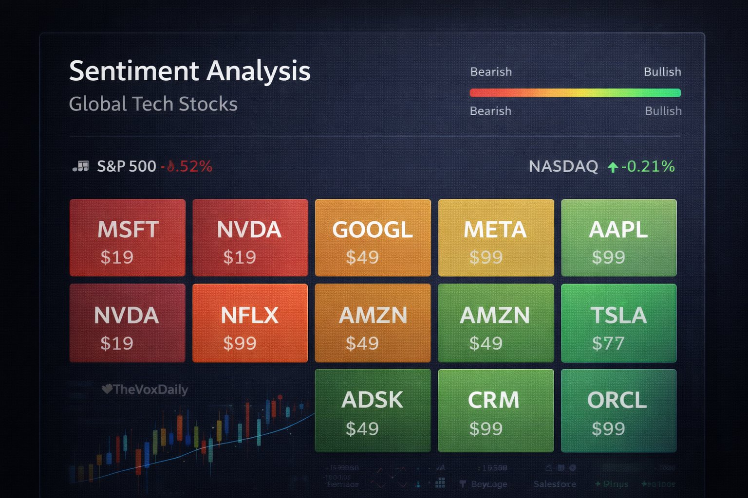 AI sentiment analysis heat map showing real-time market emotional data for tech and finance sectors.