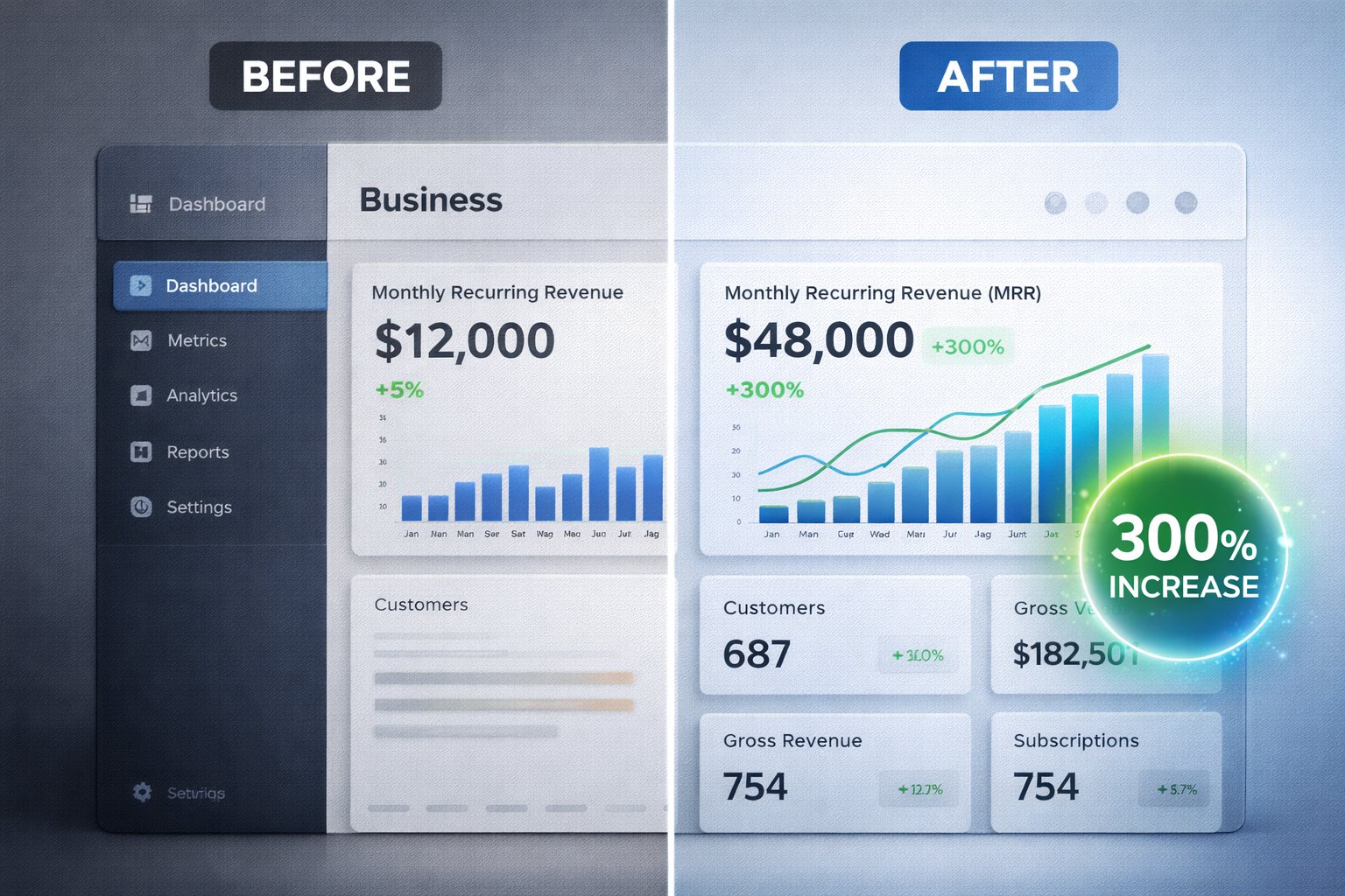 Financial growth chart showing the transition from zero to $5,000 monthly recurring revenue through SaaS reselling.